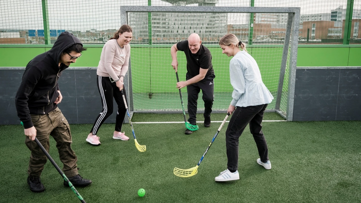 Vi er gode til at have det sjovt og tale sammen på tværs af personale- og patientgruppen, selvom vi er en gruppe af mange forskellige mennesker. Personalegruppen spænder vidt med forskellige fagligheder, baggrunde og tilgange, hvorfor vi er særligt gode til at arbejde tværprofessionelt og sikre et bredt syn på patienten som et helt menneske og med alle dets kvaliteter.