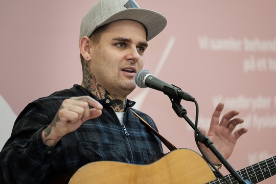 Musiker og foredragsholder Danni Elmo gav en minikoncert, hvor han sang om at være psykisk sårbar. Foto: Region Midtjylland/Jesper Voldgaard