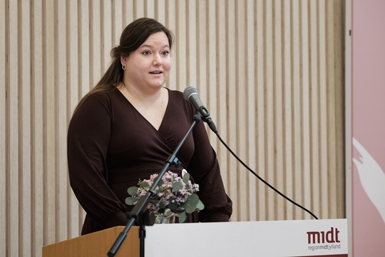 Patient Helene Egvang talte om følelserne ved at forlade noget kendt og trygt til fordel for noget nyt og ukendt. Foto: Region Midtjylland/Jesper Voldgaard