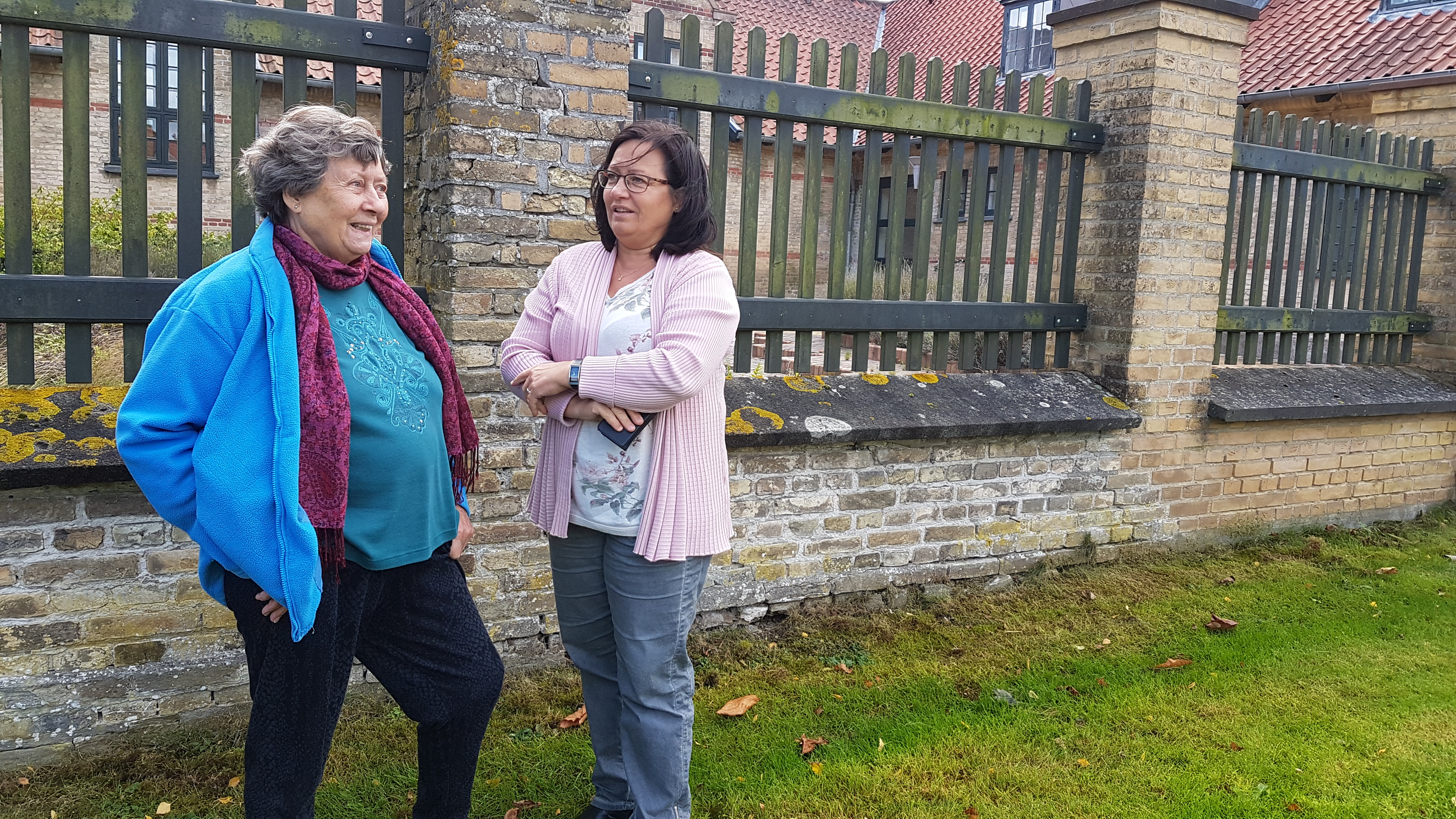 Bente Grøn-Nielsen og Anette Thierry foran portnerboligen i Risskov. Foto: Jan Hallin