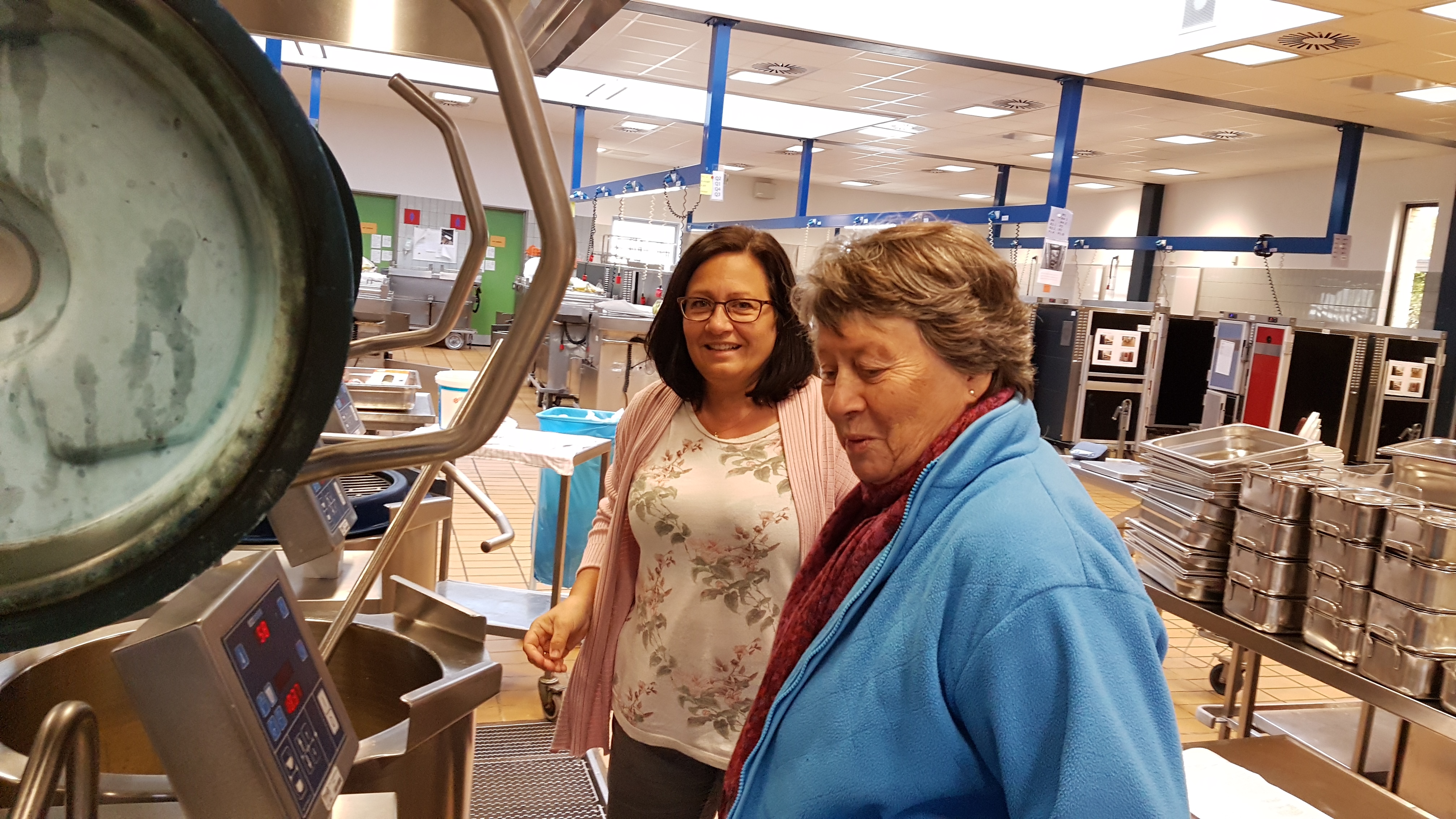 Anette Thierry og Bente Grøn-Nielsen på besøg i det nu lukkede centralkøkken.