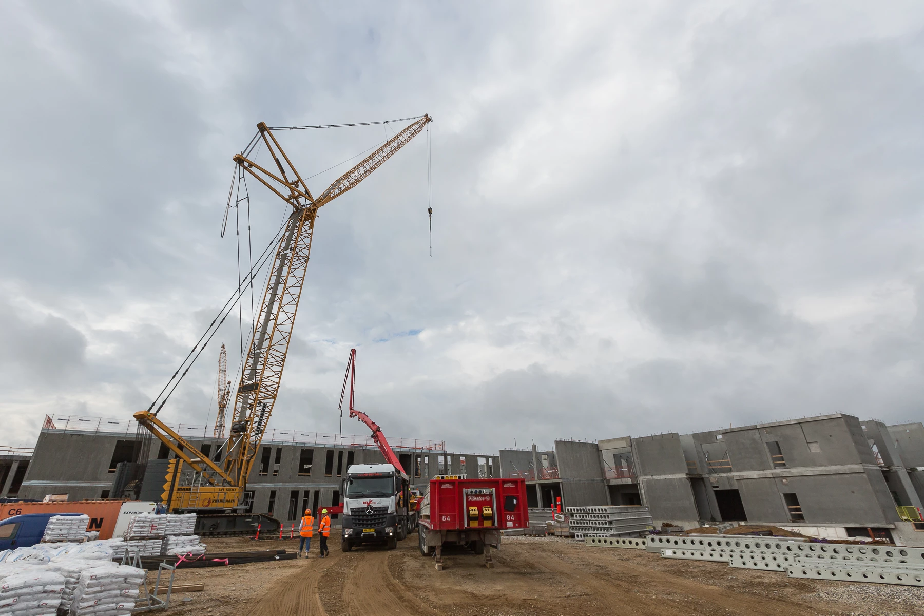 Bygningerne er nu for alvor ved at kravle opad og rejser sig nu op mod tre plan i almenpsykiatriens bygninger. Byggeriet af retspsykiatrien går også planmæssigt. Her er man nu i gang med at støbe nederste plan.